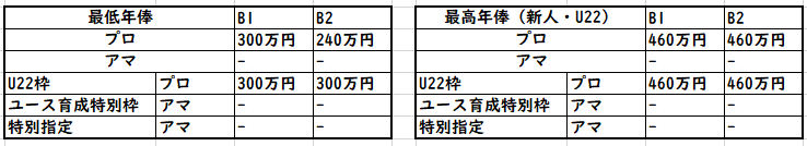 つまり、新人選手は出場時間はないのでプロC契約。出場試合時間クリアでA契約に変更は可能。バスケ低いと盛り上がっている層がいたけど、サッカーとバスケは現状同じ水準とみてよい。とはいえ、サッカーは海外直接契約のブームが来ているので変わる余地はありそう。