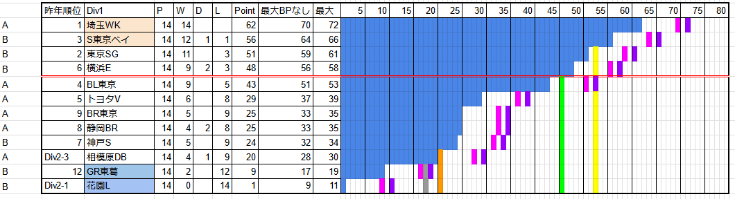 S東京ベイがPO進出を決めた。埼玉WKは2位以上確定。といってもPOは秩父、国立なので特段関係はない。