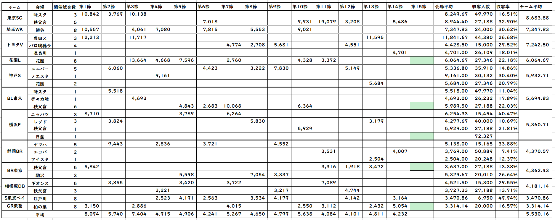 今節は一応4000人まで回復。柏の葉が今季最高。